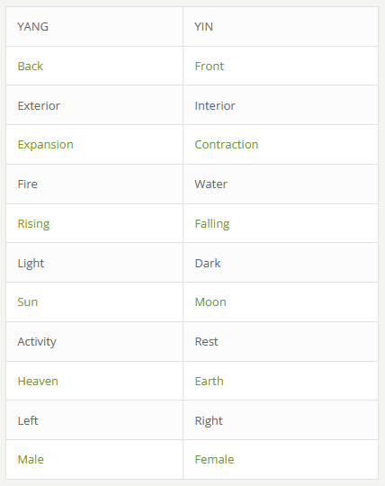 In addition, Yang represents day while Yin represents night. In real life this would translate into daytime being associated with activity and nighttime with rest. Further delineations are noted in the Yin/Yang chart.